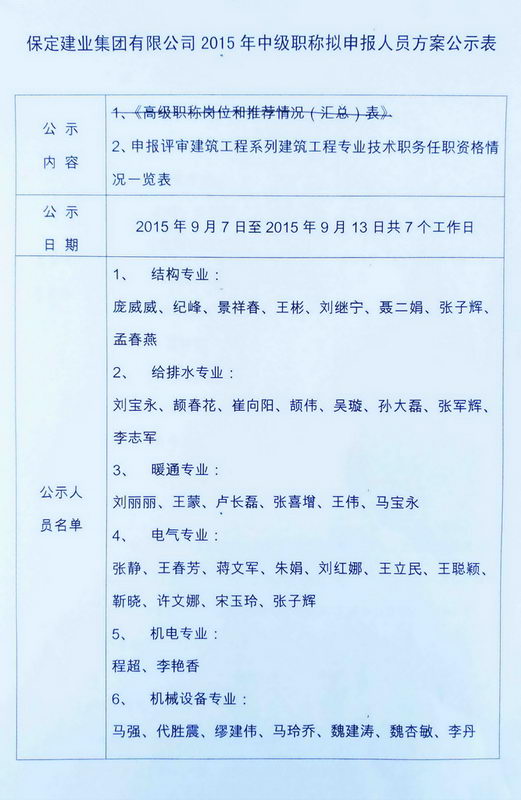 2015中級(jí)職稱(chēng)擬申報(bào)人員方案公示